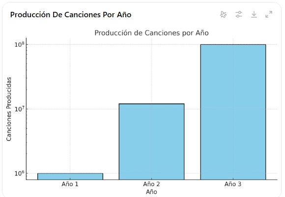 - Año 1: Producción de 1 millón de canciones.
