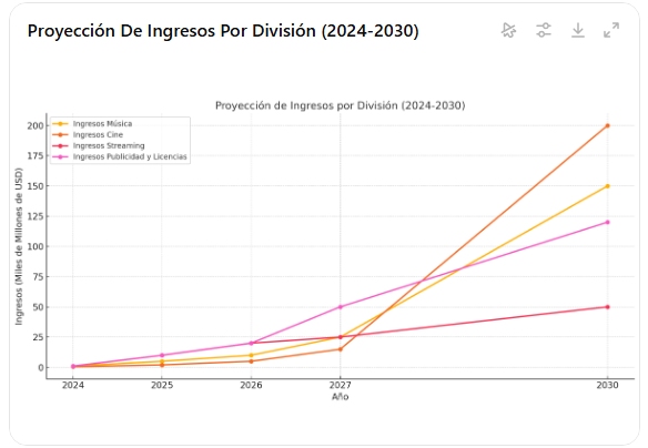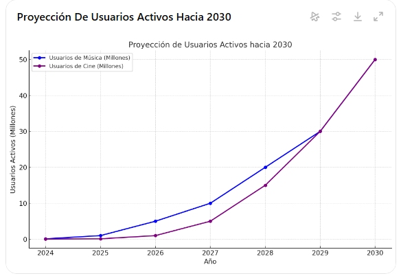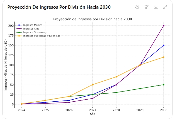 Hemos establecido un cronograma de hitos claros, desde la producción inicial de 10,000 canciones hasta el desarrollo de una plataforma integrada de música y cine. Nuestra capacidad tecnológica y estructura escalable respaldan estas metas.