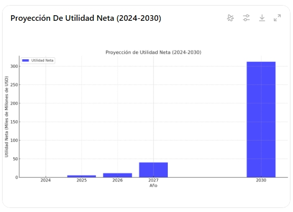 - Margen proyectado del 70% en el tercer año, tras consolidación.