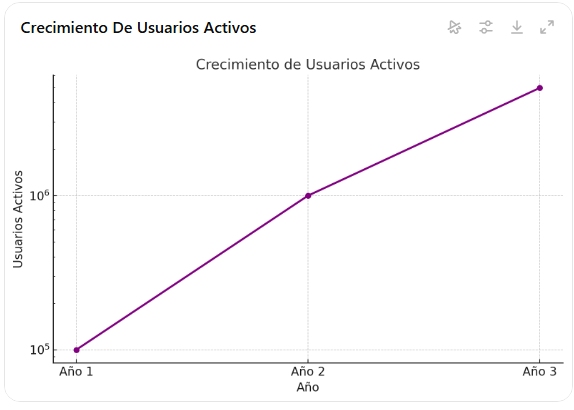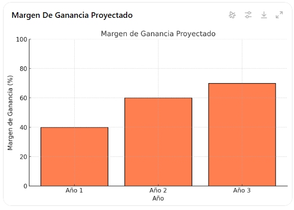 - Margen de ganancia: Escalabilidad del 40% en el primer año a más del 70% en el tercero.