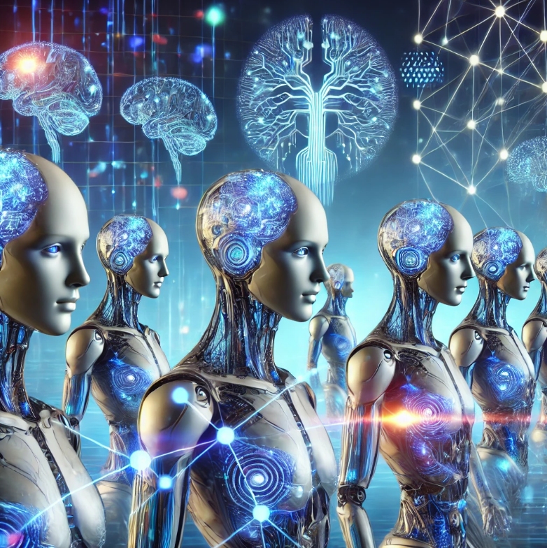 - Cada androide contribuye a la red con su experiencia única, creando una inteligencia colectiva que crece exponencialmente.