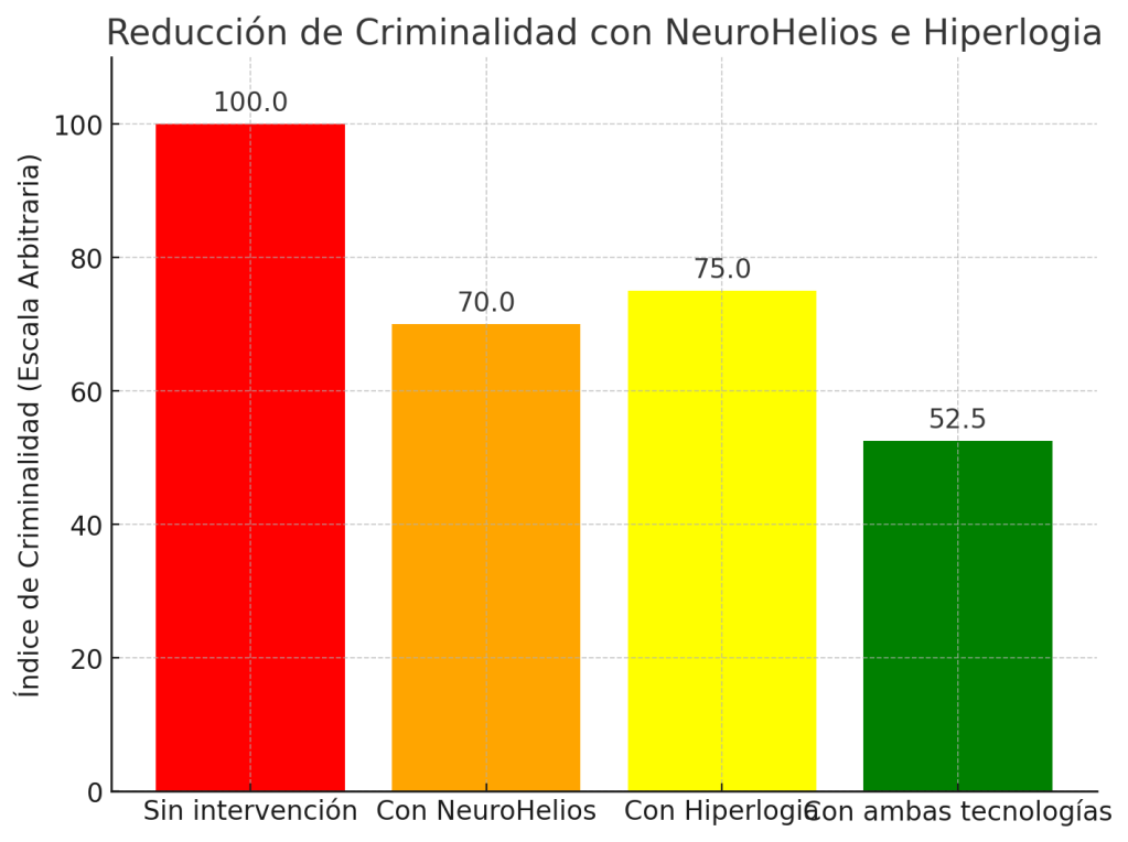 The results of the analysis reveal a profound and measurable impact on global society if the combination of NeuroHelios and Hyperlogia is implemented as tools to reduce crime. Neurocognitive stabilization and the elimination of internal contradictions not only create more logical and emotionally balanced humans, but also deactivate the primitive impulses of aggression and violence that have historically been exploited by Evil Gaia’s neurodigital control.