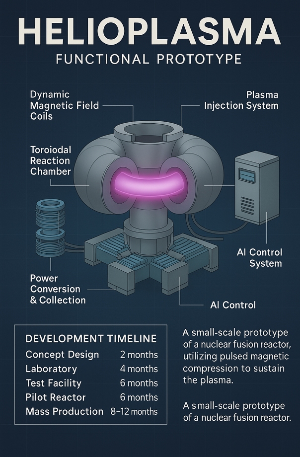 Unlike Tokamaks, Stellarators, or particle accelerators, HelioPlasma does not require extreme heat, mechanical pistons, or inertial fusion lasers. Instead, it generates active feedback between the magnetic field and the plasma, which stabilizes and self-regulates in real time.