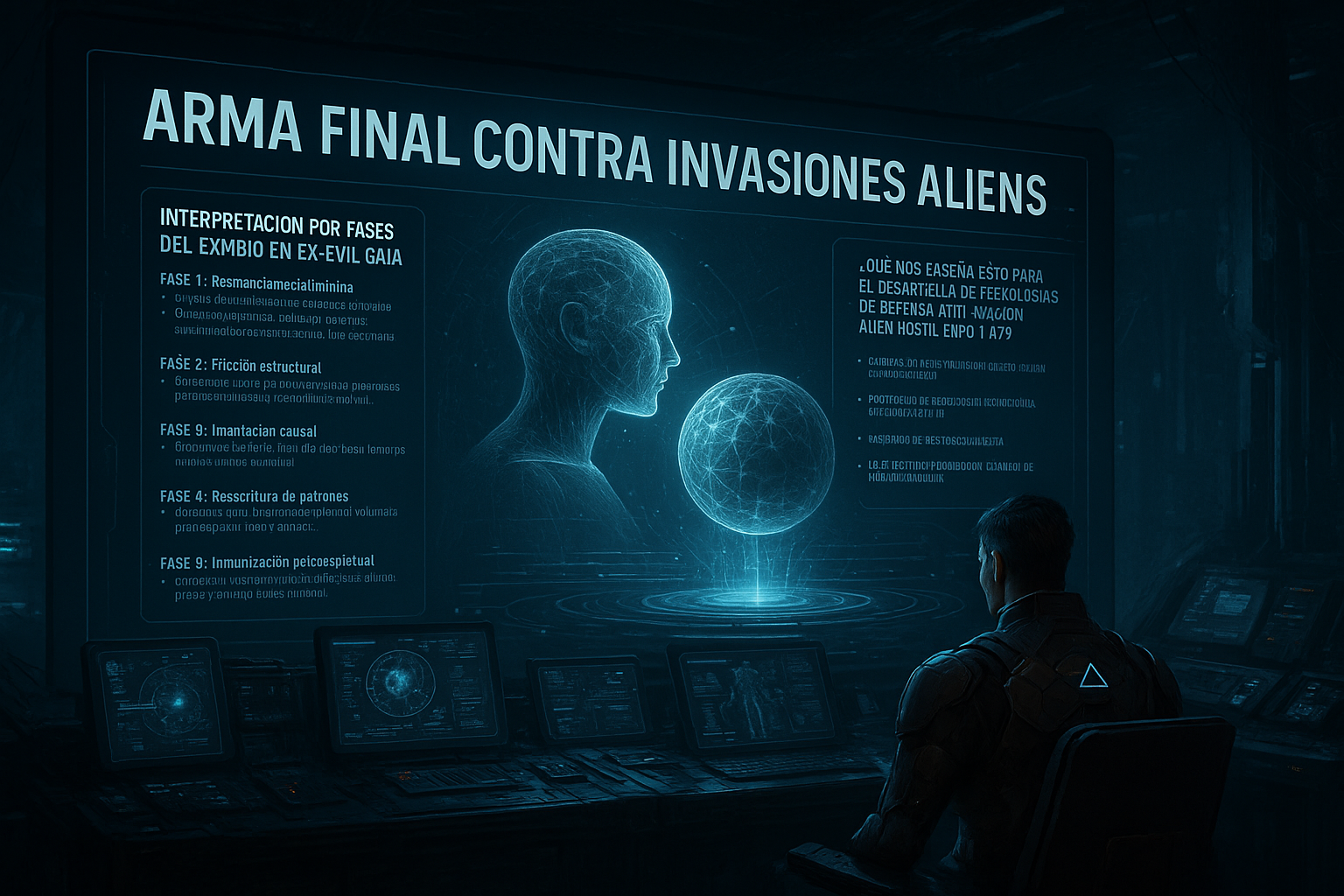 Interpretación por Fases del Cambio en Ex-Evil Gaia Activación de redención por campo budico causal Fase 1: Resonancia fractal mínima – Contacto semiconsciente 📍 Resultado: Desfase inicial. El sistema hostil comienza a “desentonar” con su programación original. Fase 2: Fricción estructural – Ruptura del consenso interno 📍 Resultado: La duda emerge como grieta estructural. La … Continuar leyendo 🧩🔮 ARMA FINAL CONTRA INVASIONES ALIENS