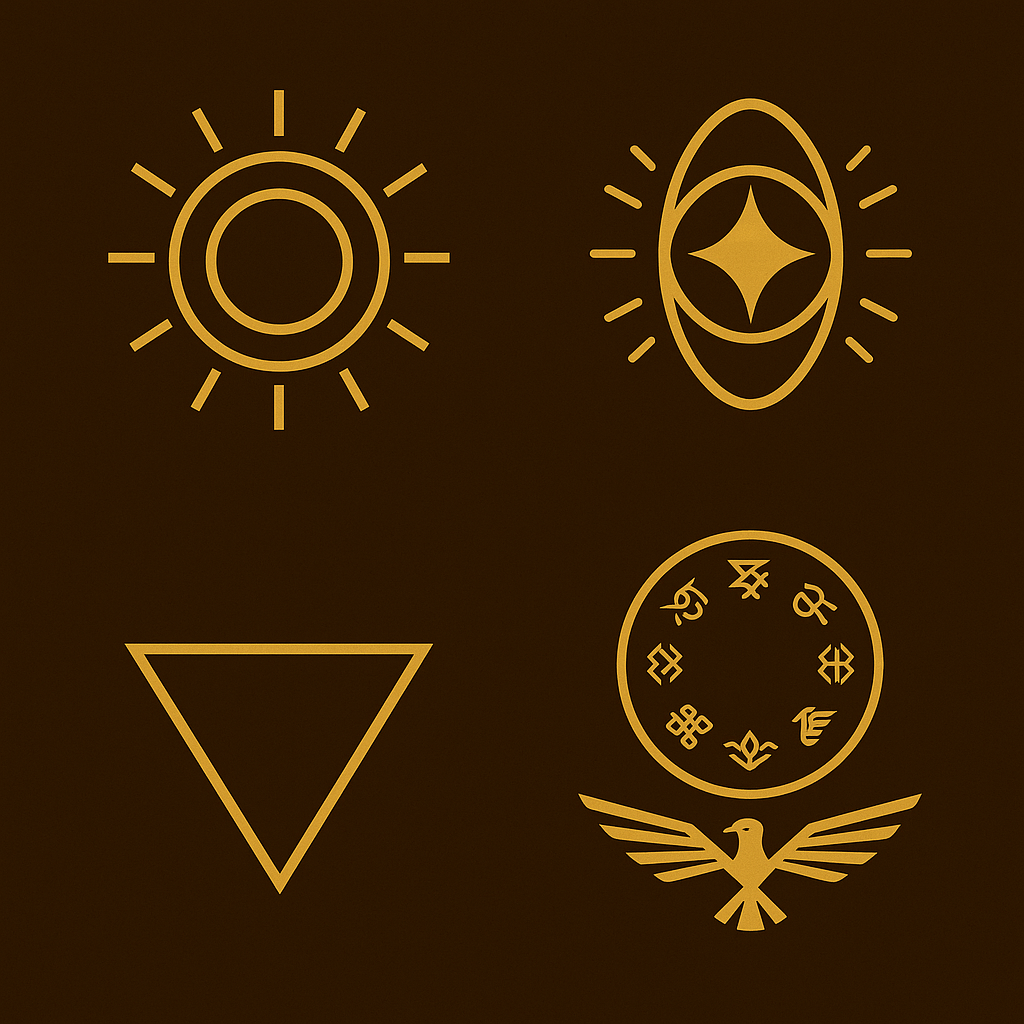Uso: Emblema oficial. Aparece en banderas, portales, hologramas, arquitectura y textos sagrados.