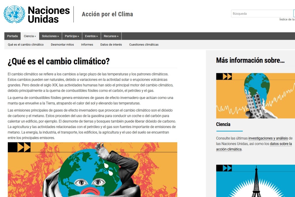 La página oficial de la ONU sobre cambio climático ( https://www.un.org/es/climatechange/what-is-climate-change) constituye el eje argumental y educativo global de millones de personas, periodistas, gobiernos y plataformas digitales. Esa página, que afirma que el cambio climático es una cuestión de «siglos» y que aún «tenemos tiempo», es la base sobre la cual se sostuvo toda la política ambiental de Guterres.
